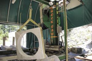 Bedard uses the rocksaw to make boulders into picnic tables, benches and tabletops. He also slices stone into flat pieces for doorsteps, patios and walkways. With the addition of a new motorized jig, he can even use it like a giant lathe, cutting perfect circles out of stone.