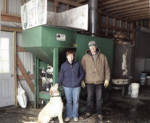 Greenhouse crops include medicinal herbs, tomatoes, ginger, greens, flowers, tomatoes, blueberries and strawberries, which they sell to grocery stores and at farmer’s markets. “We grow the corn on our farm so even though right now corn prices are relatively high, corn is still cheaper than natural gas and is a renewable resource,” says Ann.