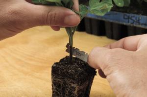 A simple way to tell if plants are ready to graft is to place a grafting clip on a representative stem. If it fits snugly, timing is right.
