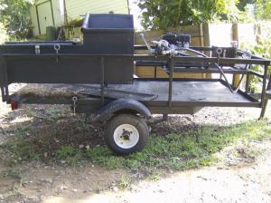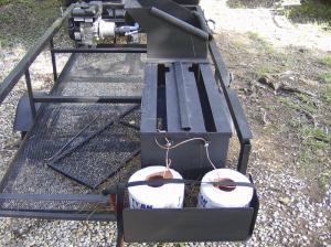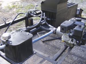 Murphy builds the units on 4-ft. wide trailers that fit easily between pine trees planted in rows 6 ft. apart. The trailers are built out of angle iron and expanded metal. The compacting unit is made of 10-gauge sheet metal.