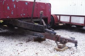 He started with an 8-ft. long, home-built trailer made by someone else who had used the pickup bed off an old Ford 1/2-ton pickup. The owner had mounted the bed on a trailer frame fitted with a ball coupler on front. Goldman modified the trailer so he can dump it with an ordinary bumper jack, without having to unhook from his pickup. The pickup bed hinges on a pair of 4-in. U-bolts that Goldman welded on back of the bottom trailer’s frame. The bumper jack mounts between the two trailer frames.