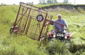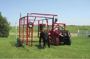 Initially designed for standard ATV’s, extended hitches are available for use with larger 4 by 4 and 6 by 6 UTV’s. The Calf Catcher attaches to the front and rear of the ATV with two-wheeled support on the far side.