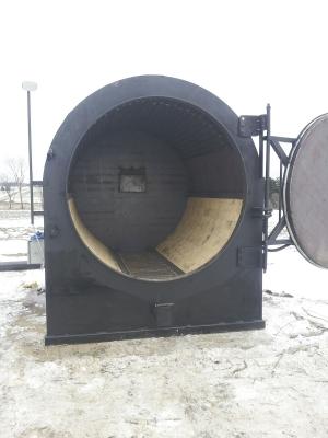 They burn well – about 1 1/4 bales per day average – in the outdoor stove Albrecht designed. He hired a fabrication shop to roll an 8-ft. dia. steel barrel and cut out other parts with a CNC plasma cutter. Albrecht and his family welded everything together themselves.