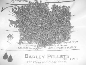 The Millers have developed a special low heat pelleting process to make soft grass pellets for the cat litter and pet bedding market. They also make pellet barley straw. Using barley straw to control algae growth in ponds is a well-established practice. Barley straw pellets are easier to handle and more effective than straw.