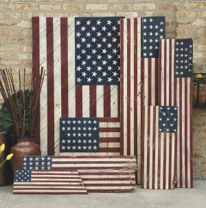 Roth salvages old wood from barns torn down in the Midwest. Flags range in size from an 18-in. board to a 6 by 8-ft. barn door. The rectangular dimensions are determined by the wood and are usually not to scale. But her fields of stars accurately depict various flags that are part of U.S. history. Each wooden flag comes with a write-up about what barn the wood came from and what was happening in history when the flag with that design flew.