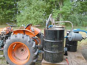 He Runs His Tractor On Grass Pellets ENERGY Alternative Fuels As Dave Dolan’s small diesel tractor sputters to life at his Flying Rabbit Farm in Otego N Y he’s proud to tell visitors that it’s powered by an unconventional biofuel made from grass With help from a Sustainable Agriculture Research Grant Dolan has been exploring the feasibility of transforming grass pellets into useable fuel He and his son and nephew built a gasifier that chemically transforms the pellets into syngas a form of hydrocarbon fuel He got the idea for using the pellets for fuel after a grass pellet manufacturing facility opened in a nearby town The trio of inventors which included his chemistry major nephew built 15 different variations before finally settling on a version that produced what they wanted The device is made of a series of metal drums each one sealed to create a pressurized environment Barrels are connected by a series of tubes that travel through filters and allow syngas to flow through the apparatus The device is fed as Dolan pours 2 medium-size pails of grass pellets into the first barrel That quantity can produce gas for up to 4 hrs Then he ignites a fire in the tank and seals up the system When the temperature in the first tank reaches 650 degrees centigrade when syngas is produced the crude syngas fuel passes through a series of filters and other barrels that purify it It goes from the final tank into his tractor Dolan fires up his 3-cylinder diesel tractor and it sputters to life ready for work “It’s not the purest syngas in the world but it works for my tractor ” Dolan says He uses by products from the system elsewhere on his farm The leftover ash can be used as a fertilizer similar to lime that neutralizes pH The system also produces biochar which Dolan has used on his crops and in his greenhouse as a soil amendment He’s also tried using syngas for his home heating system though he says the process needs further refinement to be effective and economical Contact: FARM SHOW Followup Dave Dolan Flying Rabbit Farm 174 Main St Otego N Y 13825 ph 607 746-8956