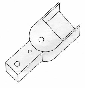 The hitch is made out of 3-in. channel iron and 1/4-in. thick steel plate welded to a length of heavy bar fitted with a ball hitch. It’s designed to simply slip over the tow hook. A steel pin goes up from underneath through the tow hook and is held on by a spring-loaded clip.
