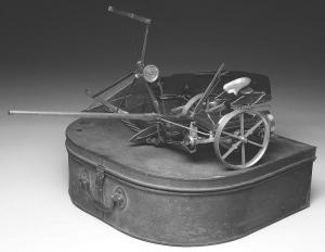 High demand items have included a 16-in. wide, 13-in. deep and 6-in. high reaper that sold for $10,665. It was made from brass and wood with fine-toothed gears, chain drive and working mechanics. Everything from the ground drive to working levers simulated the full-scale machine. It even came in the original carrying case and included a scale size wrench and a canister of loose parts.