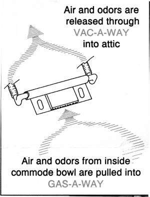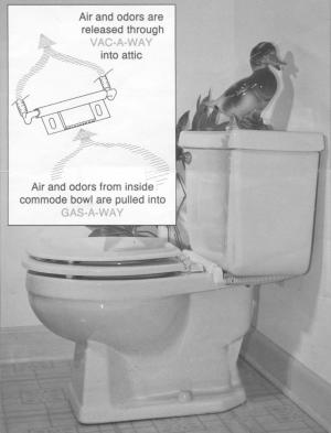 The simple device simply bolts in place between the toilet lid and the bowl using the same bolts that hold the lid. A small dia. hose attaches to both sides of the unit and an opening extends out under the toilet lid into the top of the bowl. A suction fan mounts up in the attic or crawl space and is wired to a wall switch in the bath-room. "It fits all toilets with top-mounted tanks and is so small you'll hardly notice it. It's very efficient. You don't have to leave it on for 10 min. after using the bathroom like with an overhead fan," says Antepenko.