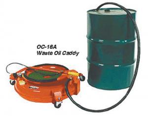 Emerson sells a Lubeq self-evacuation oil drain that holds 21 gallons and comes with two sturdy plastic drain bowls. The basic bowl is 15 ½ in. in diameter and a 14 in. size is a strainer for oil filters. A 21 in. diameter model funnel is used to drain transmissions. The drain bowl mechanism for the holding tank adjusts up 40 in. to 60 in. and is secured by a locking pin to hold the bowl in place and protect accidental blow out. The tank rolls on 3 swivel casters, 2 which can be locked to hold the unit in place. Emptying the tank is done when the tank is pressurized to 12 psi and a valve to the 6 ft. drain hose attached to the bottom of the tank is opened. A safety valve is set at 15 psi. The unit sells for $445.