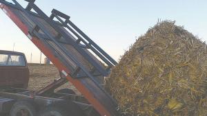 Matt Abbas, Latimer, Iowa, couldn’t justify the cost of a pull-type bale hauler to haul round corn stalk bales for use on his cow-calf operation. He already had an old Ford F-600 2-ton truck equipped with a hoist and grain box, so he built a bolt-on, bale-holding frame that replaces the grain box and can haul six bales at a time.