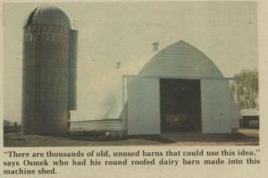 Total cost of the conversion came to about $10,000. "That's less than half the cost of a new building and it has much more space. The building is extremely strong and should last practically forever. There are thousands of barns on farms that no longer have cattle that could use this idea," says Osmek.