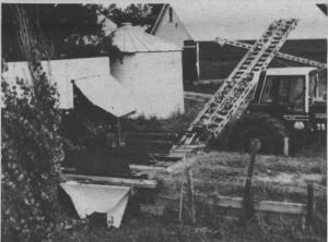 "Anyone who's ever handled seed corn on the ear knows that these high moisture nubbins are a lot more difficult to handle than crib corn," says Gail Ohlson, Ohio, Ill., who had a hauling bottleneck on his farm at harvest time until he came up with a fast system to dump high moisture ear corn, silage and other hard-to-handle grains.