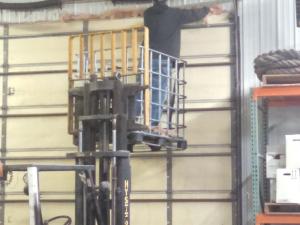 “It took only about an hour to put together. I use it to do everything from changing light bulbs to washing out fertilizer spreaders to doing roof work,” says Hansen. “I figure that if the shuttle floor is strong enough to support a 250-gal. bulk tank weighing 1,600 to 2,000 lbs., it’s strong enough to support me. Chemical shuttle cages like the one I used are readily available at little or no cost.”