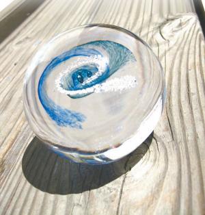 A California glass blowing business offers a way to keep the memory of a loved one close. Memory Glass® encases a tiny amount of the ashes (from 1/8th to 1/4th teaspoon) in colorful glass pendants, touchstones, or globes. The thin white line of ashes embeds into the glass when heated to 2,000-F degrees and can be shaped into swirls, ribbons and other patterns in a variety of colors.