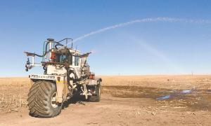 “I looked on the Internet and found a Mertz floater spray rig for sale north of Lincoln, Nebraska,” he explains. “I took all the pipe off and put on two high-pressure pumps and plastic fittings. I spent all winter rebuilding it.”