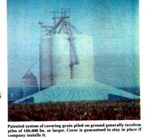Developed by Paul Double, owner of Canamer Leasing Services, Winona, Minn., it's designed for covering big piles - usually in the neighborhood of 100,000 bushels - and has caught on fast with commercial elevators. There is virtually no limit on maximum size of the piles since the cover can be made as large as needed to cover. The practical minimum size for having a pile custom-covered, with the company's own crew doing the work, is right at 26,000 bu.