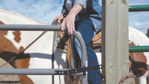 An upright lever makes it easy to open while on horseback or with an elbow when carrying something.