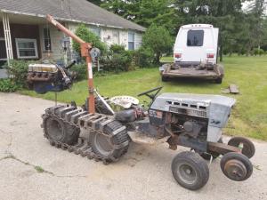 Mike Hodgson, Fruitport, Mich., wanted a small “go-anywhere, do-anything” tractor so he built his own “half-track” tractor by mounting steel tracks on the back of a Sears 16-hp. garden tractor. A manually-operated boom can be bolted on between the tracks.