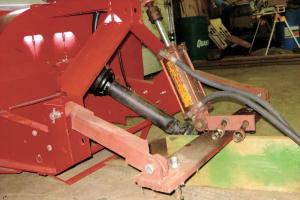 “I mounted a homemade hinge on the snowblower end of the cylinder. There’s never any downpressure on the blower and it can lift independently of the tractor if it has to. The other end of the cylinder pins onto a top link bracket that was already on the tractor,” notes Hallman.