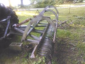 Sweep Bar Pushes Branches Off Rock Rake Tines HAY & FORAGE HARVESTING Rakes 44 I had a 6-ft wide rock rake on my small farm tractor that did a great job scraping up limbs and branches But whenever I collected a pile of brush and tried to dump it branches would stick between the tines says Missouri handyman Tom Roy I fixed the problem by making a scraper bar that operates with a double-acting hydraulic cylinder Roy says the idea came to him out of frustration because he was constantly getting off the tractor to clear brush and branches from between the rake tines after a big storm Building the device to sweep the branches off with a cylinder was real easy Roy says He welded brackets to hold the cylinder on top of the rake frame then built 3 control arms that move a 6-ft wide bar to push branches and brush off the tines when the rake is lifted Retracting the cylinder returns the bar to the top of the tines The whole device added quite a bit of weight to the rock rake so now it actually works a lot better Roy says I can also use the rake to yank out briar bushes and then push them off the tines without getting off the tractor Contact: FARM SHOW Followup Tom Roy 5735 N Main Street Joplin Mo 64801 ph 417 781-1814