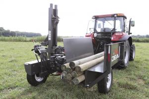 Applegate developed and began selling the post pounder in August 2018. Set up on a trailer that can be pulled with a pickup or utility tractor, it includes a bin to hold posts. A 750-lb. hammer with adjustable height, powered by a 14 hp. Kohler engine and direct mounted hydraulic pump, can drive in posts up to 12 in. in dia. and 12 ft. long. Its low gravity and wide stance offer stability on uneven ground. The joy stick operation makes it easy to use.