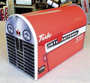 IH Mailbox Wrap FARM HOME Miscellaneous When a customer asked Derek Venette to make an International wrap for his mailbox the New York state graphic designer knew very little about tractors Based on the photo of another mailbox the artist ended up with a design that his client liked - as well as many others “I never realized IH had such a big following ” Venette says “I put it on my personal Facebook page and on Farmall’s Facebook page and had 400 likes on it with people asking ‘Where can I get one?’ ” His design - for a large mailbox the client provided - includes the logo tractor elements and the client’s address number “It looks basic but it has shadows and I went piece by piece to create the headlights and grill ” he says It took about four trials to get it just right - especially the correct red color for International It took another 2 hrs to apply the laminated wrap to the mailbox Lifespan for the vinyl wrap is 6 to 8 years Venette says “I’ve done cars buses snowmobiles and motorcycles but this was my first mailbox ” he notes He recently purchased a large format digital printer and would like to follow up on requests he received from the Farmall Facebook site Venette is open to doing other model tractor designs as well He notes that for DIYers he could create the wrap and they could apply it themselves but most people don’t want to attempt it He invites people to contact him about requests and pricing Contact: FARM SHOW Followup Derek Venette New York State ph 607 426-4261; derek venette@gmail com