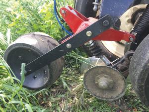 That design uses their patent-pending bracket in conjunction with the Precision Planting® Clean Sweep® cylinder, plumbing and controller to adjust closing wheel down pressure from the tractor cab. Bruce says with this attachment owners of 1200 series planters can get the same seed-to-soil contact efficiency without having to buy a new 2000 series planter. Another benefit is that AirCover eliminates the need to replace the wear points on the 1200 series closing system, which usually had to be done every couple years.