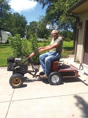 “It became a way for me to get around a lot easier,” he says, whether it’s to the mailbox or the garden. He’s used it for about 18 years, and when the old tiller engine died, he replaced it with a 5 hp. engine. His wife made it more comfortable with a foam seat covered with vinyl.