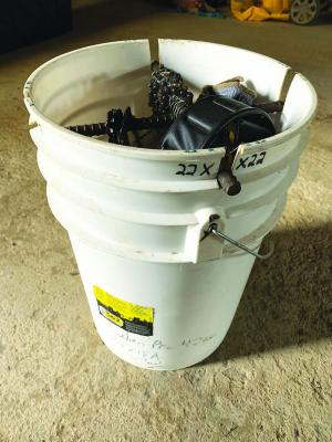 Ryan Kremer, Mount Blanchard, Ohio: “I used a 5-gal. bucket and some rebar to make a chainsaw chain and supply-carrying tote. It keeps my saw chains and other items organized and easy to find. “I cut two sections of rebar and wired them together perpendicular to each other to form an X that lays across the top of the bucket. I cut four slots into the top around the perimeter of the bucket, and the four arms of the X slide down into them. The chains hang from the arms.”