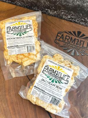 Says Klock, “We’re like the Baskin-Robbins of flavored cheese curds. We’ve come up with 45 flavors of curds so far.” Among those are the original (unflavored curds) and others like Kickin’ Maple Honey and Jamaican Jerk. Farm Life Creamery also has rare, small-batch artisan cheddar flavors like Bloody Mary, Coffee, and Chocolate. Others include the more conventional flavors like Dill, Caraway and Original. Other cheeses they’ve mastered are colby, gruyere and mozzarella. Cheeses are sold in single packages, as a cheese tray assortment or multiples in a gift box.