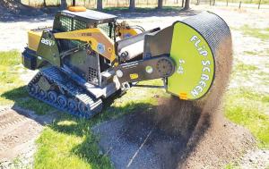 “Flip Screen” Bucket Sifts Loads MISCELLANEOUS EQUIPMENT Earth Movers An innovative new bucket design from Australia lets you scoop up a bucket of material move it to a sorting area and separate materials by size Multiple screen options let the operator customize the operation to the materials being screened from rocks and soil to compost weed infested dirt demolition remains or scrap metal “Flip Screen Buckets are ideal for any type of recycling or recovery process where materials need to be separated out by size ” says Shawn Brush Flip Screen USA Unlike most screening devices the Flip Screen Bucket has no vibrating or internal moving parts Two high capacity hydraulic drive motors produce maximum torque to easily rotate the mostly covered bucket The motors work with any hydraulic pressure or flow Rotate the bucket counterclockwise and an interior shelf retains oversize material as smaller material passes through the screen Flip rotation to clockwise and the retained larger materials fall out of the bucket Buckets are available in 4 models sized for a wide variety of machines from 1 1/2-ton skid steers to 60-ton excavators They vary from the S10 with a 0 13 cu yard load capacity and priced at $8 900 to the BL65 with its 0 85 cu yd capacity at $24 500 The price includes the buyer’s choice of screen Additional screens up to a 2-in mesh are priced at $1 800 while screens from 2 to 3 in are priced at $2 300 Prices of screens above 3 in are available upon request Flip Screen Buckets can be used as a standard bucket with no screening as easily as with screening The base is water-tight allowing the operator to move wet materials around without spilling An optional roller brush can be installed for screening sticky materials Durable high-grade seals on the hydraulic motors allow the Flip Screen Bucket to operate under water This transforms it from a screener to a mobile wash plant “Add the solid screen mixing plate and you can even mix concrete in a Flip Screen Bucket ” says Brush Check out the video of the Flip Screen in action at FARMSHOW com Contact: FARM SHOW Followup Flip Screen USA 1041 Technology Way Waxahachie Texas 75167 ph 469 892 2050; shawn@flipscreen net; www flipscreenglobal com