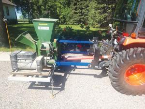 When Tony Negen upgraded tractors, he lost the use of his chipper. The older Kubota had a 1,000 rpm pto and the new one only had a 540. He solved that problem with a combination of jackshafts and pulleys. In the process, he realized he could drive a generator off the modified pto as well, so he extended the chipper platform with a slide-on mount for the generator. Since then, he also modified a leaf vacuum so it can slide on in place of the generator when it is needed.