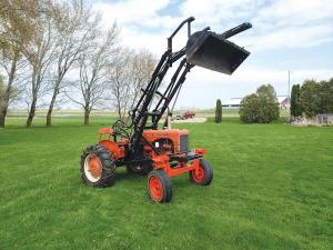 “His next project was building a self-leveling loader that has upward and downward hydraulic pressure, as well as a hydraulic tilting bucket. The loader is self-leveling due to a clever design that my grandfather came up with. The loader features two lift arms configured in a parallelogram, which controls the tilt of the bucket when the loader is raised or lowered. The self-leveling feature prevents the need for the operator to continuously adjust the tilt angle of the bucket as a load is raised or lowered.