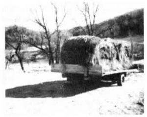 It doesn't take a lot of money to make a bale hauling trailer. We built this one for a total cost of $142, plus our labor. It'll haul 3 big round bales, or 8 smaller round bales with four on each side. It consists of an axle from an old Ford combine that we fitted with smaller 14-in. rims. We bought the steel frame at an auction for $17. We fished some railroad ties out of the river during high water in the spring and sawed our own 6 by 6 stringers and 2 by 6 boards for the deck at our sawmill. Deck boards are spaced 1 1/2 in. apart. We bolted a 2 by 4 along each edge to tip the bales slightly inward as we have hilly land. A pair of 3 by 3-in. end stakes with two 2 by 6 boards keep bales from rolling off the back. The trailer bed is 18 ft. long, 8 ft. wide. (Grau Brothers, P.O. Box 251, Brownsville, MN 55919)