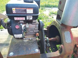 He figured the 212cc engine would work in the H because the tractor’s original engine was small with 24 hp. and 1,600 rpm’s. Though the new engine is only 6.5 hp., it runs at up to 3,600 rpm’s. He used a large 84-tooth sprocket on the new shaft to make up for horsepower with increased gear ratio. He wasn’t sure if No. 40 chain would be enough, but it’s worked well for a couple of years. The total cost of getting the Farmall H running was about $400.