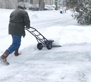Donnelly has pushed up to 8 in. of dry snow with the ClearPlow, by taking narrower swaths. But he emphasizes that ClearPlow is too hard to push when the snow is deep, heavy, and wet - a plow or blower is needed then.