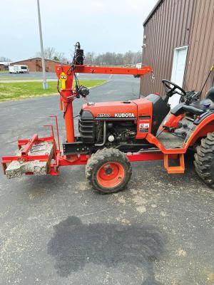 For the headstone project, he started with a hoist that was donated by someone because it was bigger than they needed. Since the winch lifts up to 3,000 lbs., it can easily handle double headstones that weigh about 400 lbs. The challenge was mounting the hoist so it wouldn’t tip the small Kubota B7500 tractor.