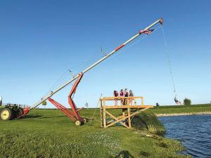 “One summer, I came up with the idea to make a rope swing over the water,” Bonnema says. “I borrowed my neighbor’s telehandler and hooked up some rope on the loader and tines. It worked well, but of course, he needed it at his place most of the time. The kids had so much fun using it that they wanted something more permanent.”