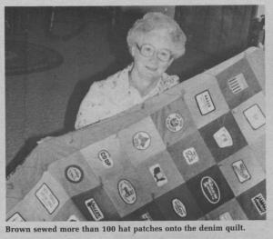 Audrey notes that it took her about five years to collect all the patches but only a week to put them all together and sew the quilt. Her relatives and friends helped her collect the cap logos.