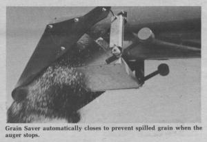 The Grain-Saver, which fits onto the end of the unloading auger, automatically opens when the auger is engaged, and closes when disengaged ù even when the auger tube is full of grain.