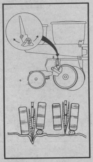 This pivoting action means that the gauge wheels and seed opener lift only a fraction as high when they hit a dirt clod or rock. It also keeps equal pressure on the other gauge wheel for proper soil firming.