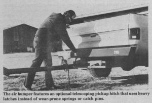 The air bumper can be ordered with or without the company's telescoping hitch. The unique hitch has heavy latches that lock permanently without the aid of springs and so, according to the company, it stands up better to wear and tear, especially when used with corrosive material such as fertilizers. The lateral movement of the hitch, when extended, is 15 in. and it telescopes about 5 in.