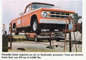 The hoist requires no air or hydraulic pressure. It folds up and takes very little storage space when not in use, yet sets up quickly wherever needed when there's work to be done.