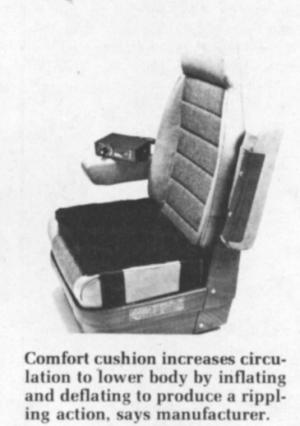 The cushion inflates with air for two seconds, then deflates for eight in a pattern that continues automatically for ten minutes. The cycle is controlled by the solid-state, electronically regulated control unit that comes with the cushion and can be mounted on the instrument panel.