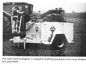 Optional equipment includes a transfer pump and filler hose, a rechargeable battery to operate the pump and a fuel meter. Sells for $2,800.