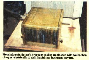Spicer claims that John Lorenzen, Woodward, Iowa inventor featured several times in FARM SHOW for his experiments with powering a car on-the-go with hydrogen, originally built his first hydrogen-maker after seeing Spicer's system.