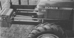 The weight rack consists of a bolt-on metal frame made from tube steel and angle iron that can be adapted to any tractor. A standard weight rack is attached to the front of the bolt-on frame and two small dia. cylinders move it in and out a maximum of about 4 ft. The cylinders are connected to and run off one auxiliary valve. As the tractor weights more forward, they magnify the offsetting down-ward effect.