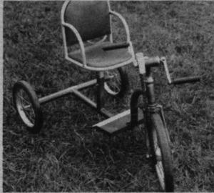 Pedal powered wheelchair MISCELLANEOUS EQUIPMENT Handicapped Equipment 9-6-35 This pedal-powered wheelchair was built by Handicap Mobility, Inc., a custom shop in Carter Lake, Iowa that builds specialty equipment for the disabled. The pedaled wheelchair was built for Terri Sopcich, of Omaha, Nebraska, a 10-year-old who has suffered from severe lateral curvature of the spine ù or scoliosis ù since infancy. The special built chair lets her move easily to and from school, steering and pedaling with her hands. Todd Bequette of Handicap Mobility, Inc., who designed the chair, says it's difficult for a young girl to keep up with classmates in a conventional wheelchair. For more information on the pedal chair, or other specialty equipment or conversions, contact: FARM SHOW Followup, Handicap Mobility, Inc., 511 E. Locust, Carter Lake, Iowa 51510 (ph 712 347-6666).