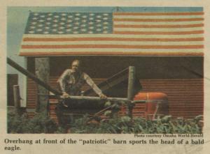 When the shingles on Dale McKenzie's barn started looking a little rough, he decided something had to be done. "Something" turned out to be a 20 by 32 ft. flag that now adorns one side of the barn roof facing Highway 283, near Elwood, Neb.